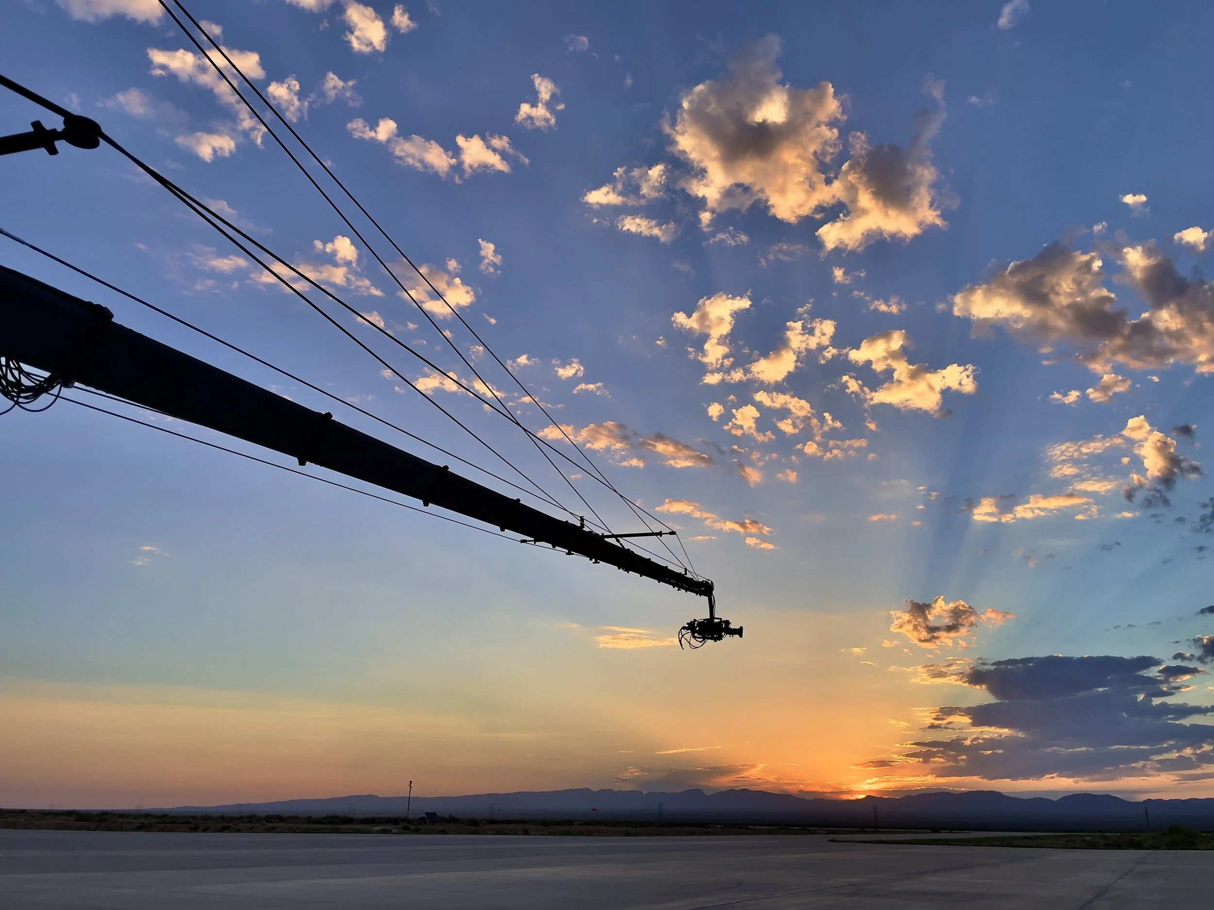 Early morning sunrise operating my 40 foot jimmy jib on an airport landing strip