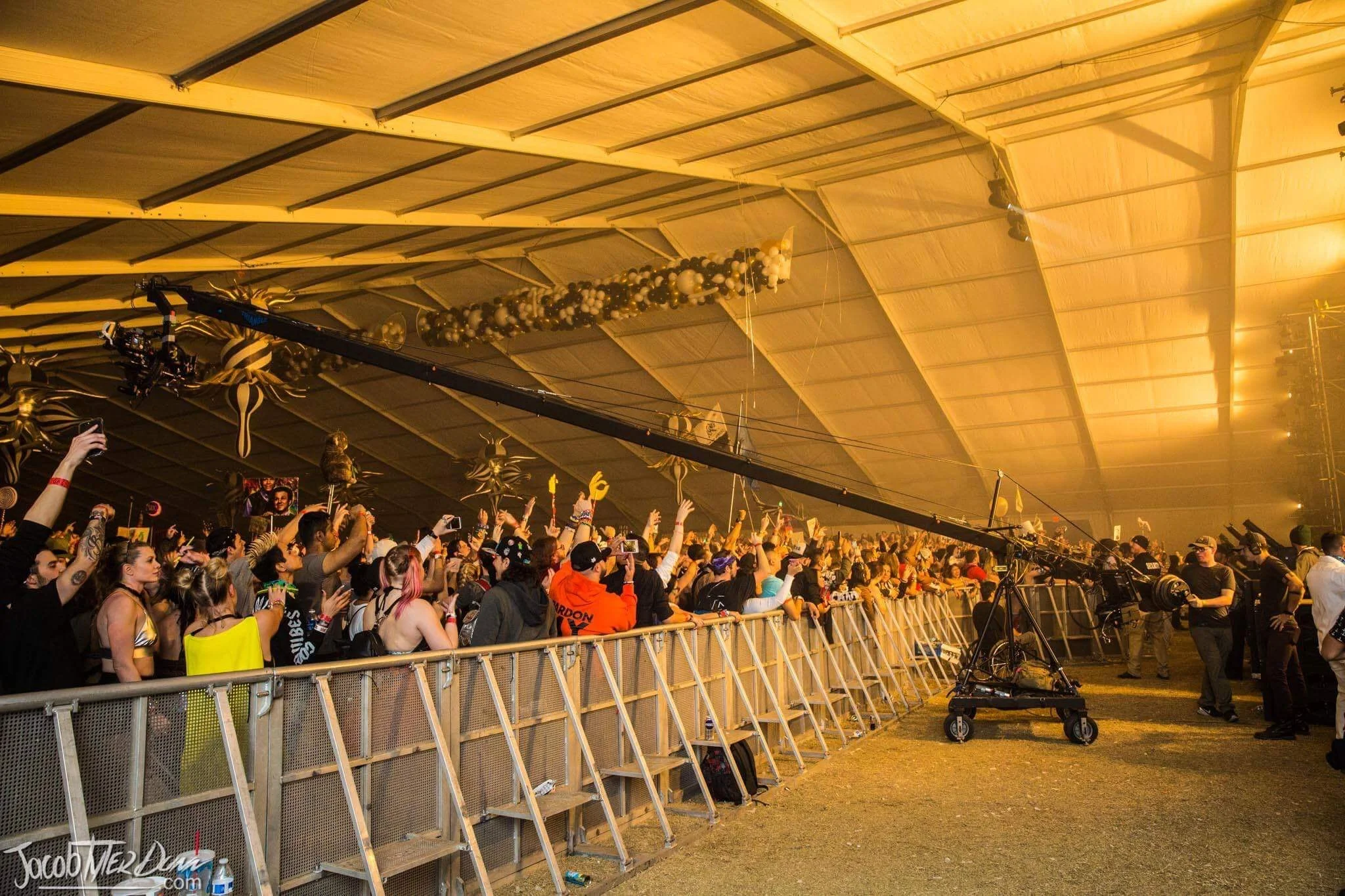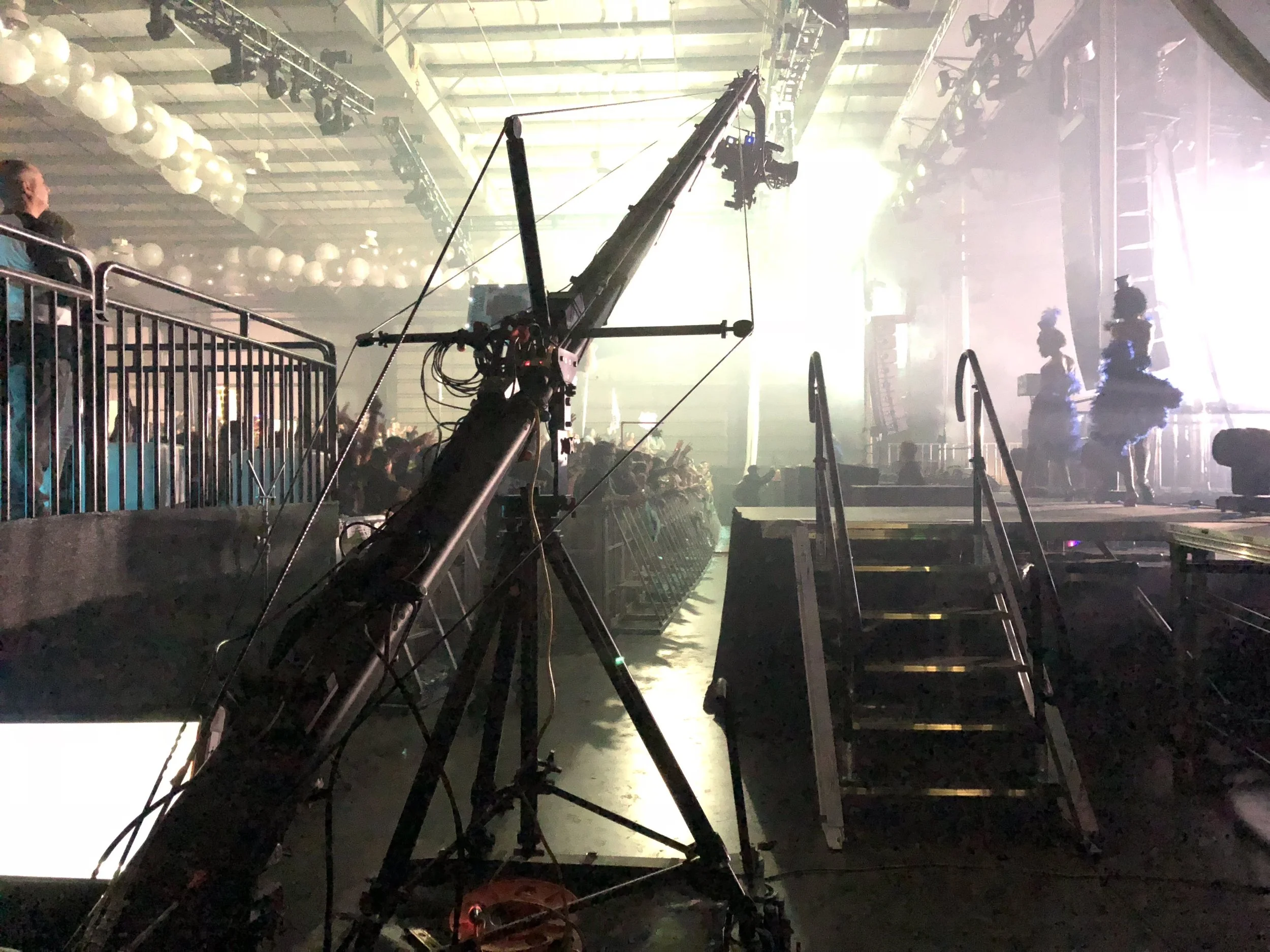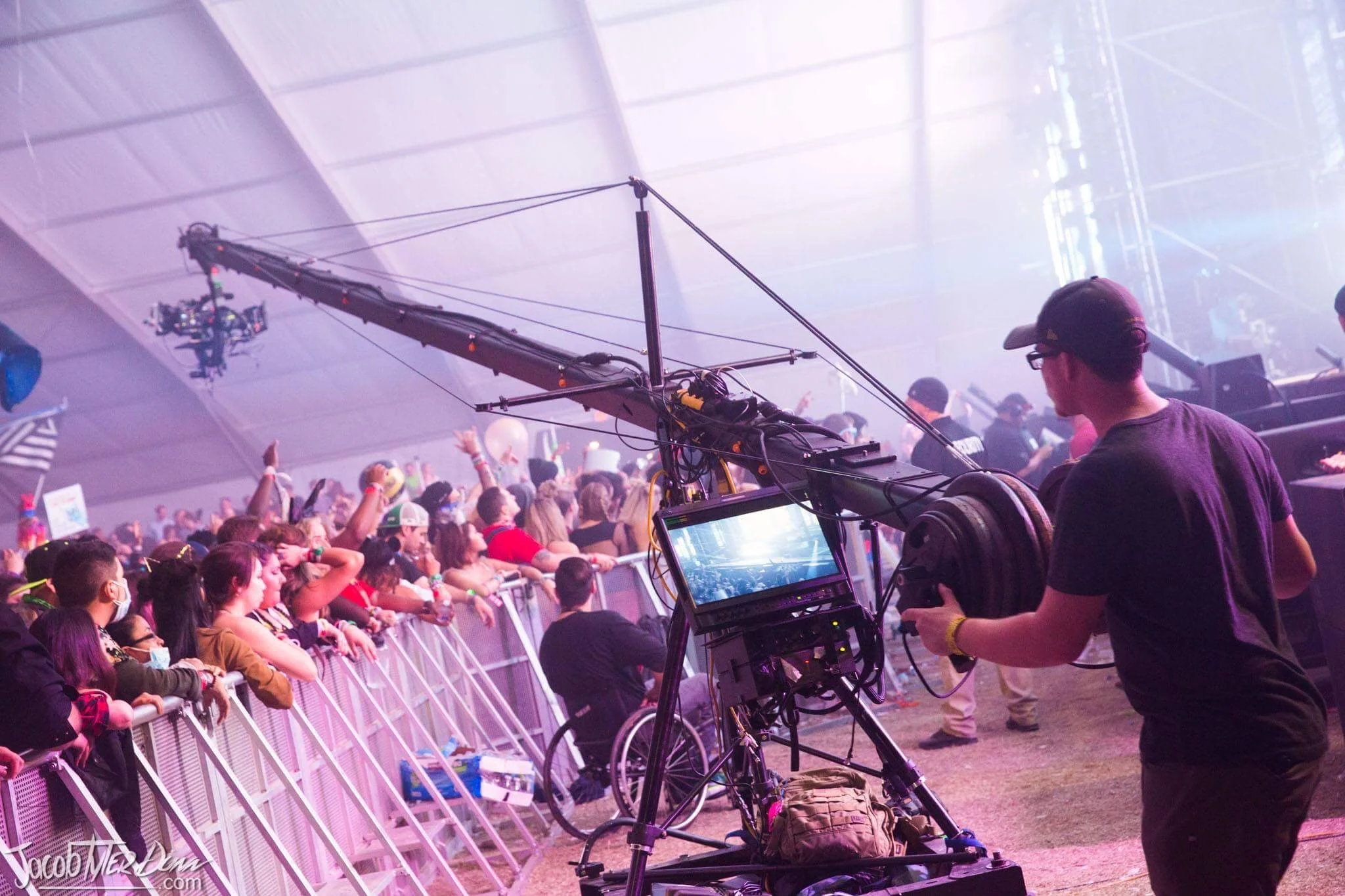 Aaron Phoenix Jib Operator swinging the 24 foot jimmy jib for another music festival