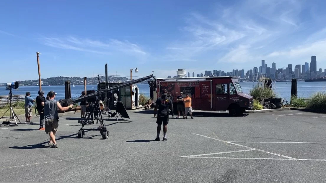 Jib Operator on the set of "Burger Truck Brawl" on Discovery plus on location in Seattle Washington