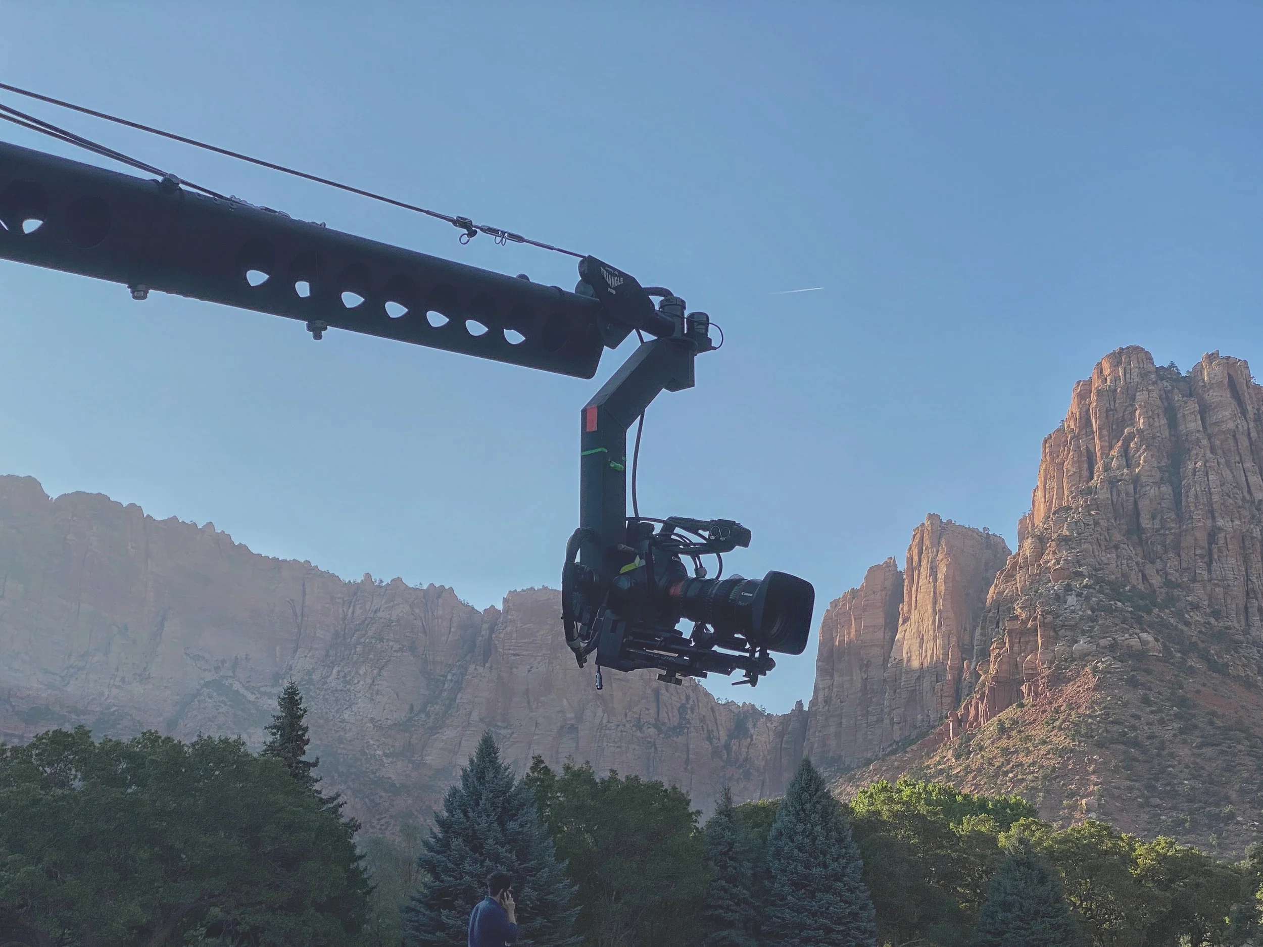Flying a 30 foot jib through this beautiful Scenery outside Zion for a concert in a park